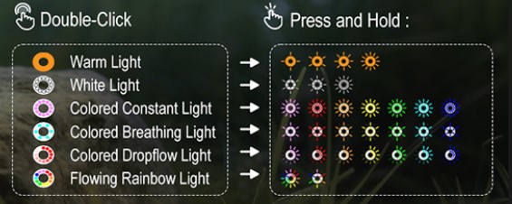 • Modos de luz frontal: 3 niveles + doble clic para Turbo + triple clic para Estroboscópico + SOS