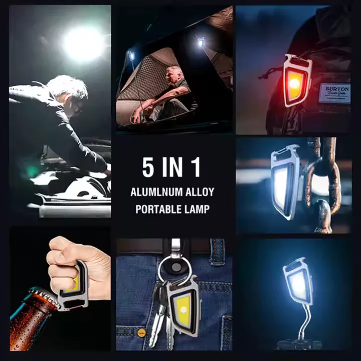 Boruit YHX-0209 Linterna COB multifunción con llavero + abrebotellas