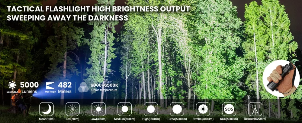 • Cuerpo de la linterna: aleación de aluminio de grado aeroespacial 6061