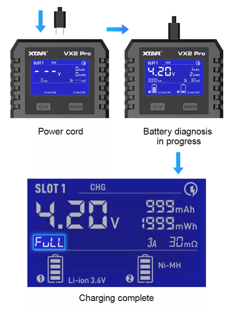 El VX2 Pro es un cargador inteligente de dos ranuras con control independiente que ofrece mucho más que carga, con funciones profesionales y diseño fácil de usar