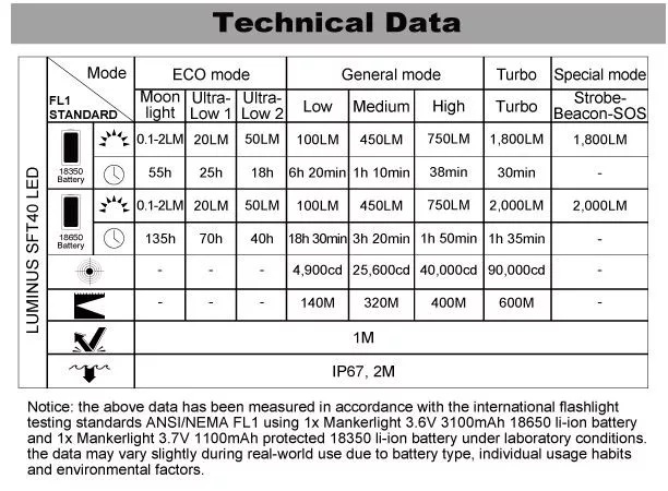 • Utiliza 1 LED LUMINUS SFT40 con una salida máxima de 2.000 lúmenes.