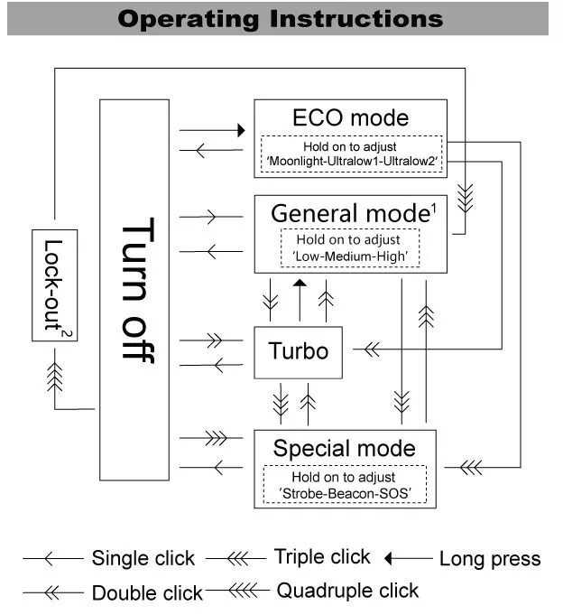 • Triple clic para el modo especial: Estroboscópico/Señal/SOS.