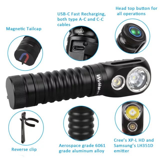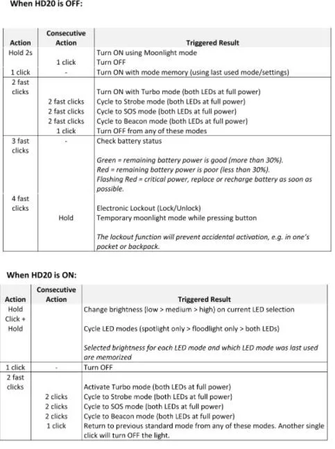 Linterna HD20, cordón, juntas tóricas, banda para la cabeza, tubo de batería, clip, manual del usuario, cable USB-C.