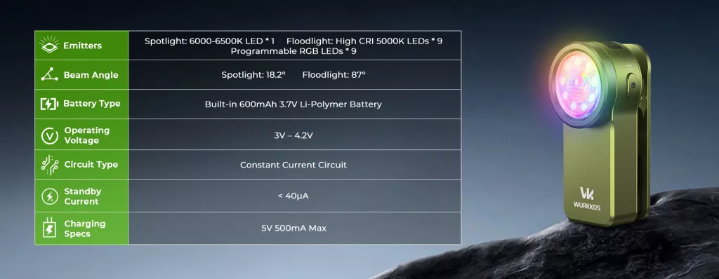 Wurkkos HD03 recargable, haz/pantalla/RGB, magnética, IPX6 resistente al agua.