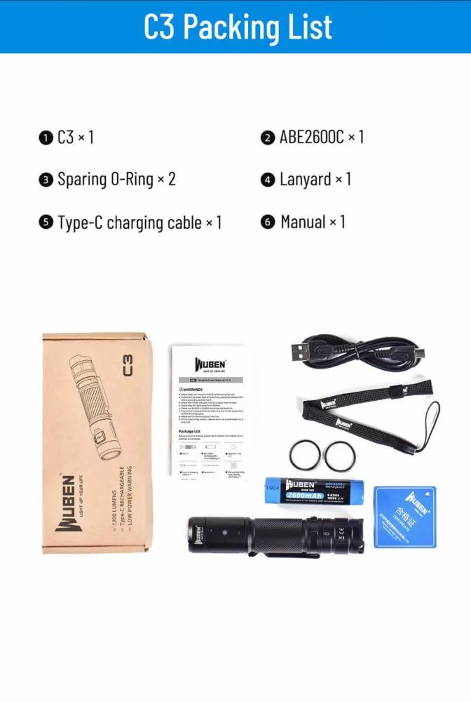 WUBEN C3 1200 Lumens Camping EDC Linterna LED