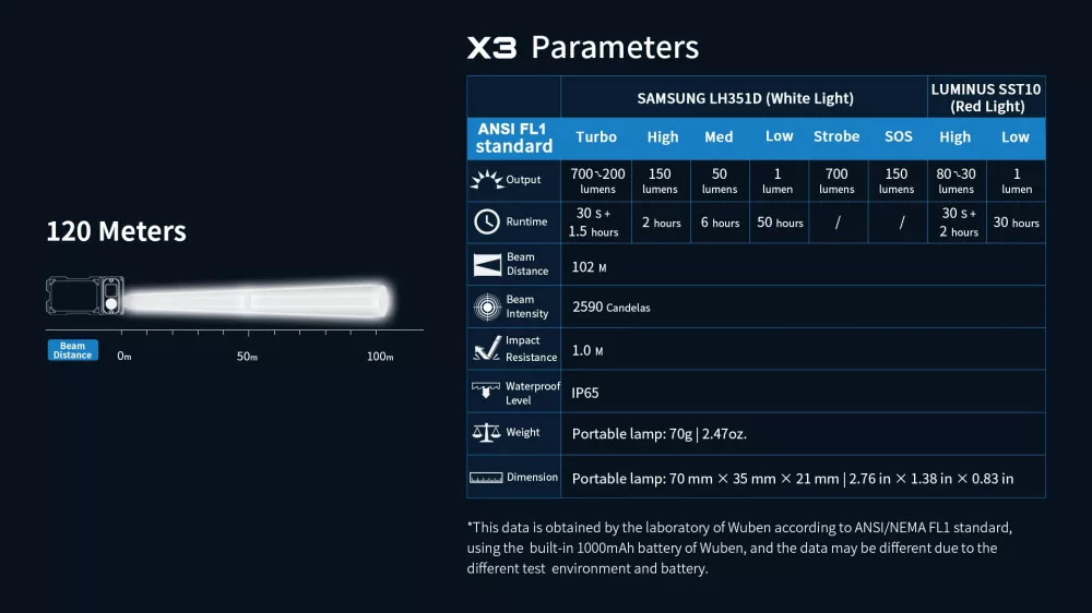 • Larga duración y potencia potente: con la caja de carga de 3000 mAh, el X3 tiene una duración de batería de más de 100 días y un máximo de 700 lúmenes.