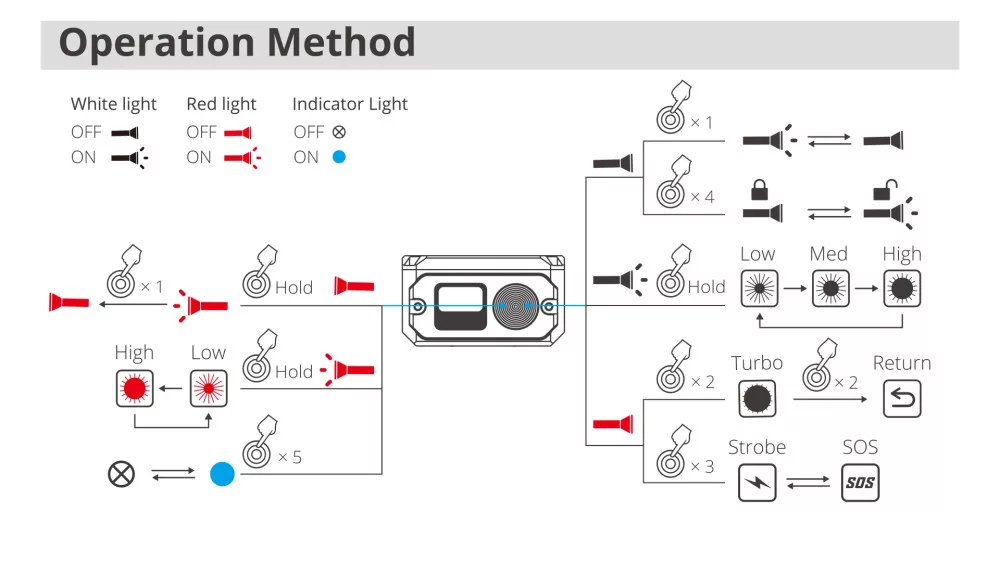 • LED duales: opciones de iluminación versátiles con potentes LED blancos para iluminación enfocada y LED rojos aptos para visión nocturna, lo que lo hace adaptable a diversos entornos.